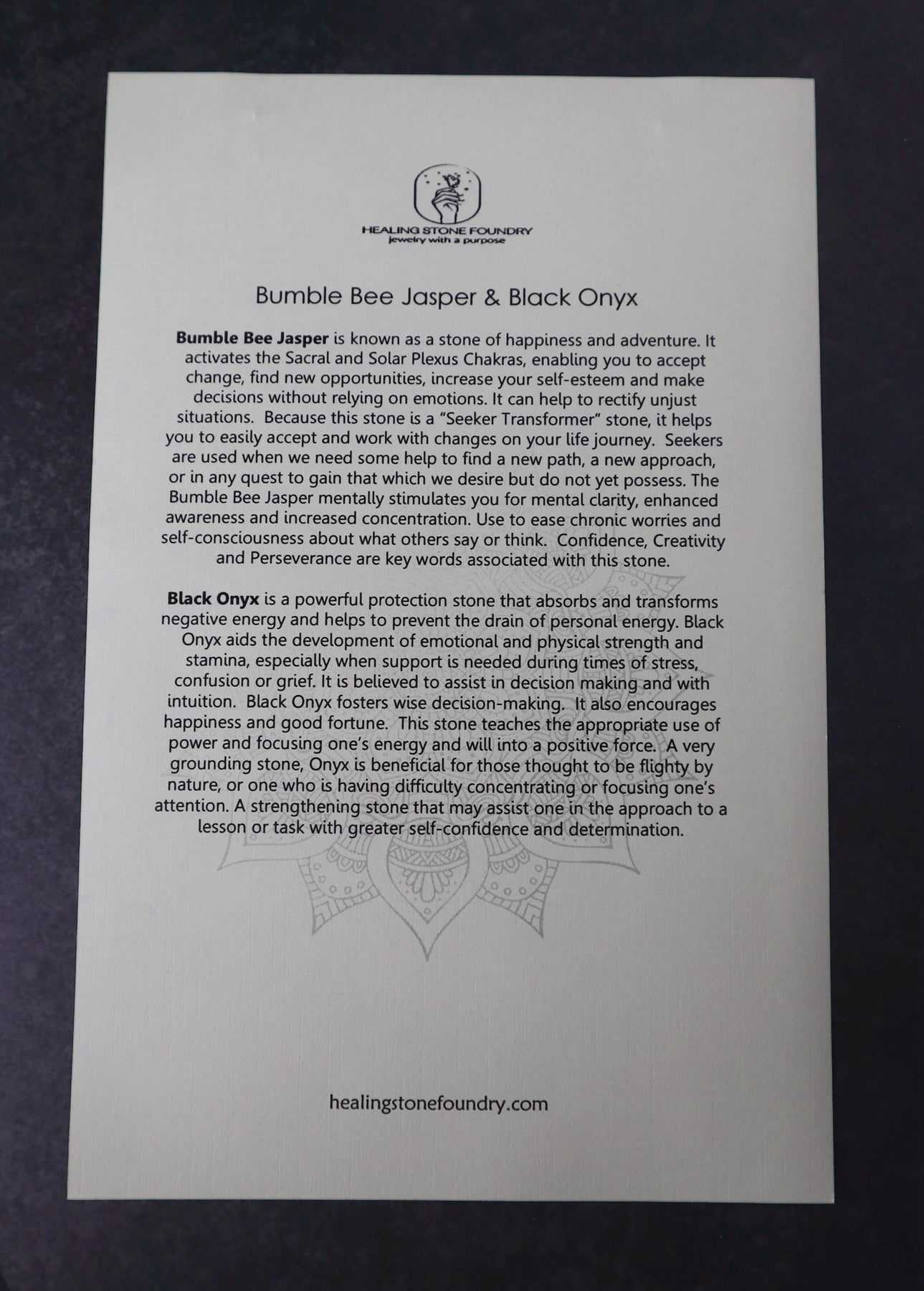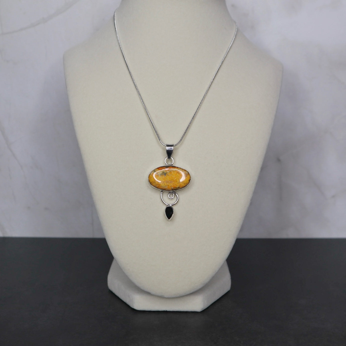 All of our pieces are handmade with natural stones, making each one truly unique. Variations in color, shape, and pattern are natural and part of the beauty—your piece will be similar, but not identical, to the one shown above.